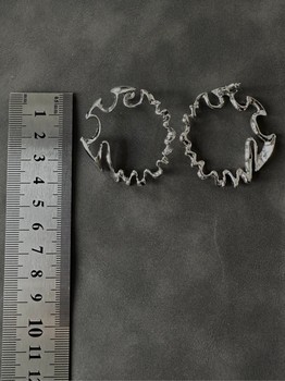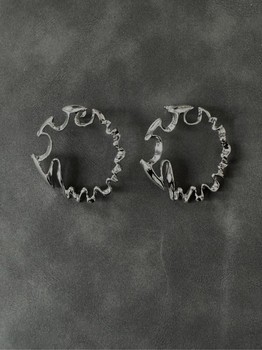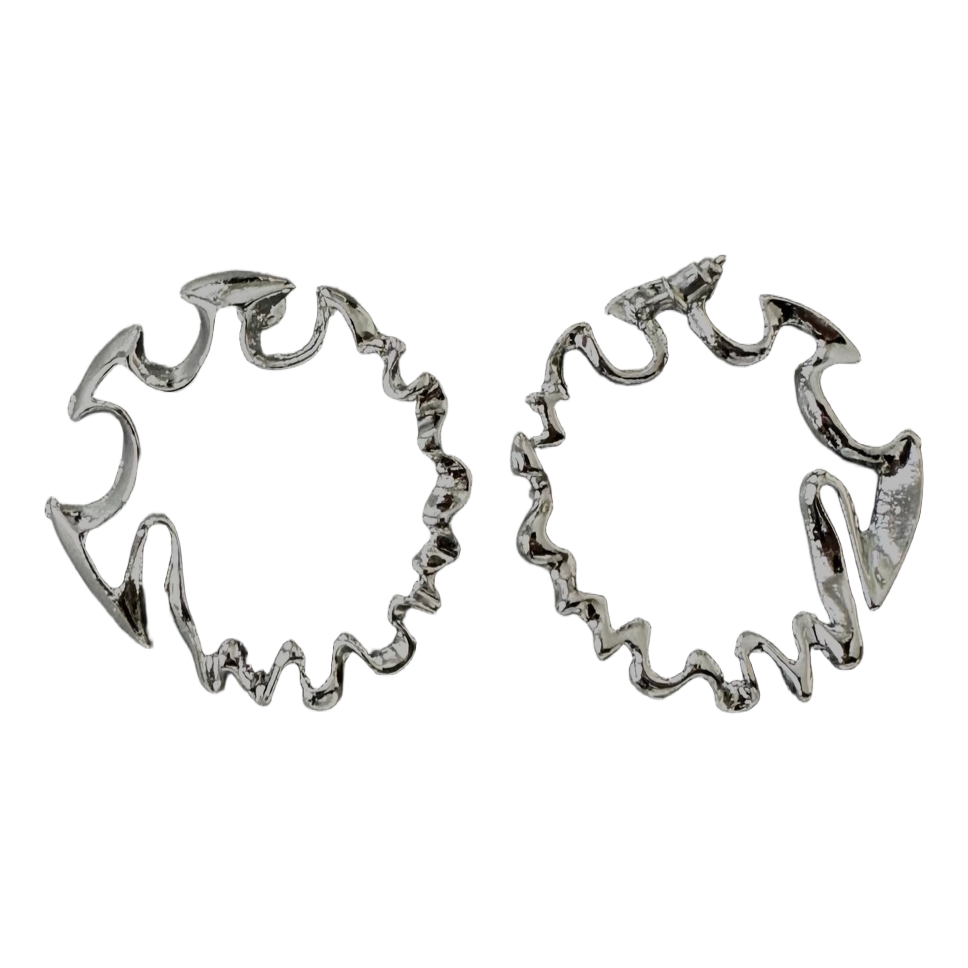 Silver-toned hoop earrings with an irregular, wavy edge design. Includes posts for pierced ears.