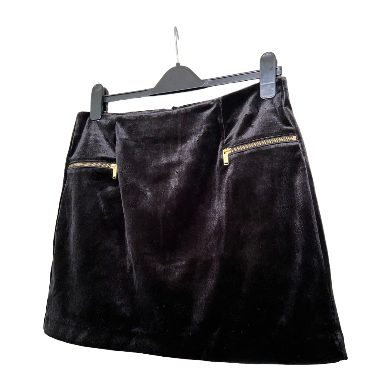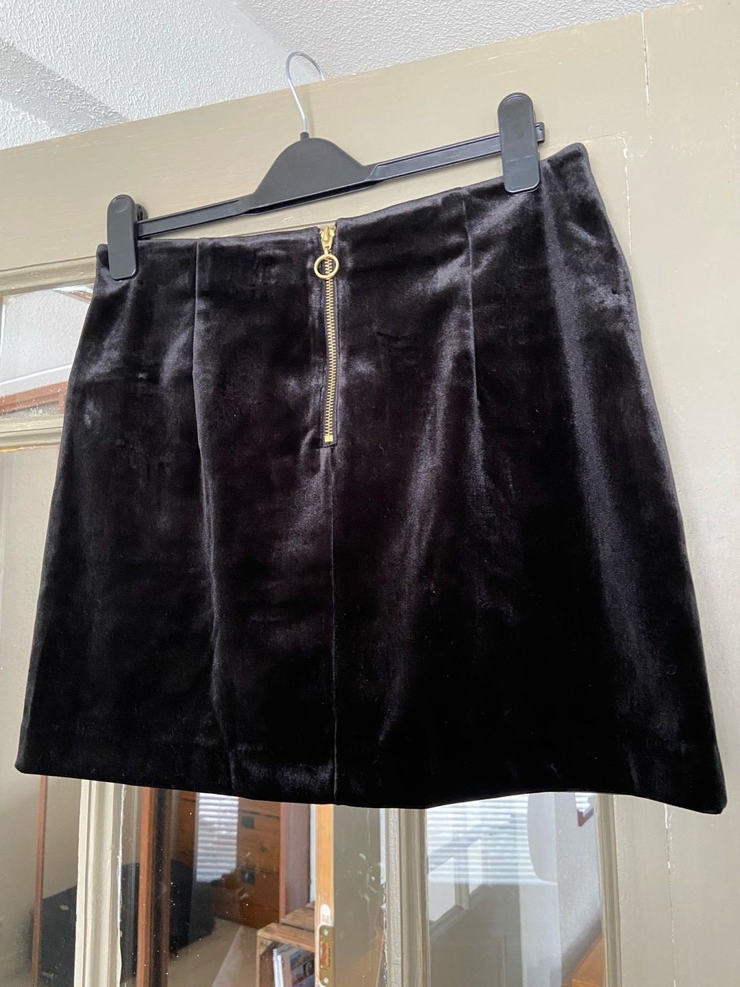 Black velvet miniskirt with gold colored hardware by H&M. Size medium. Very good condition.