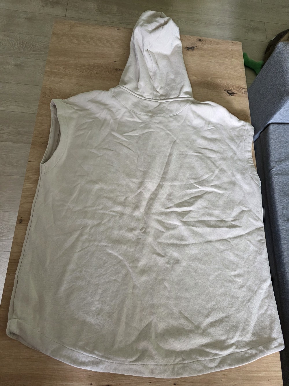 Sand-colored sleeveless top with hood