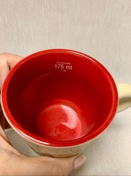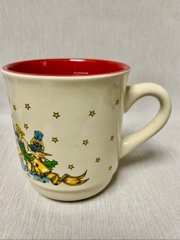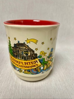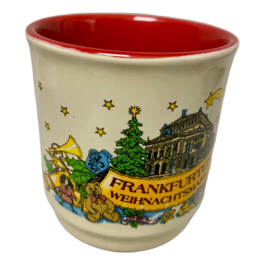 Ceramic souvenir mug from Frankfurter Weihnachtsmarkt. Features festive Christmas decorations and a capacity indicator of 175 ml.