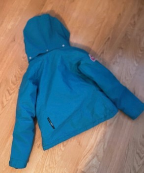 The jacket size label 130, suitable for a 128-134 cm clothes wearer. Armpit-to-armpit 38 cm Shoulder-to-hem 49-50 cm