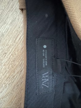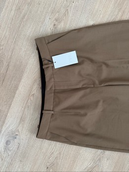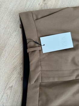 Brown wide-leg trousers. The product has a price tag.