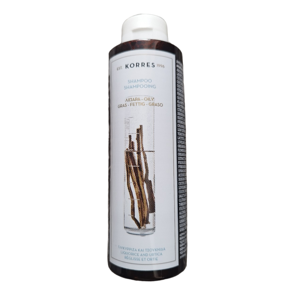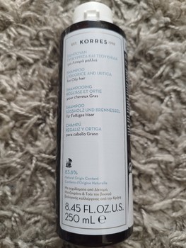 Korres shampoo for oily hair with liquorice and urtica extracts. Contains 250 ml.