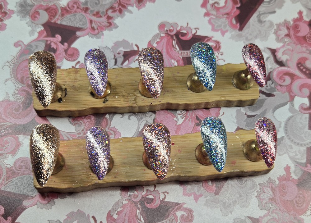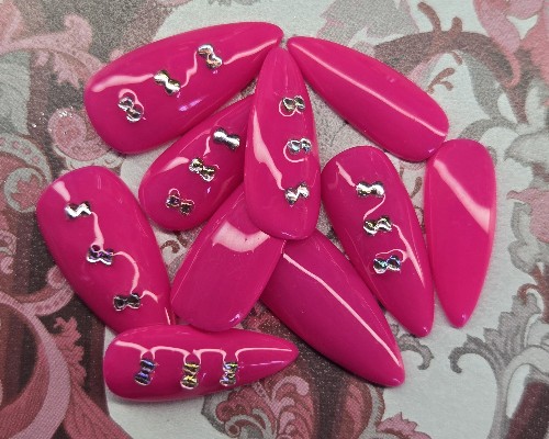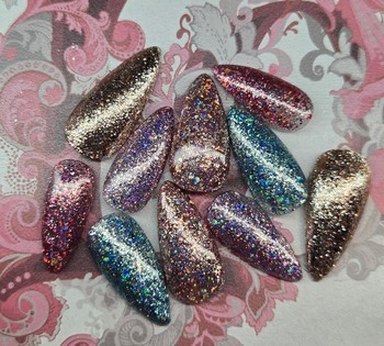 All nails have had high-quality tips used. If the nails have decorations, they have been attached with CH Nails' glue gel. Size (please see the picture, size marking is indicative) and the tips' details can be found in the pictures. They need tabs or glue for attachment - not included!