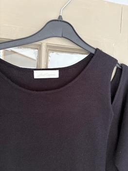 Asymmetric knit top with a cutout on the left shoulder by Japanese brand And Couture. Stylish and unique design in very good condition. One size, best fits extra small to small.