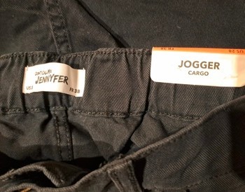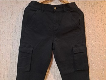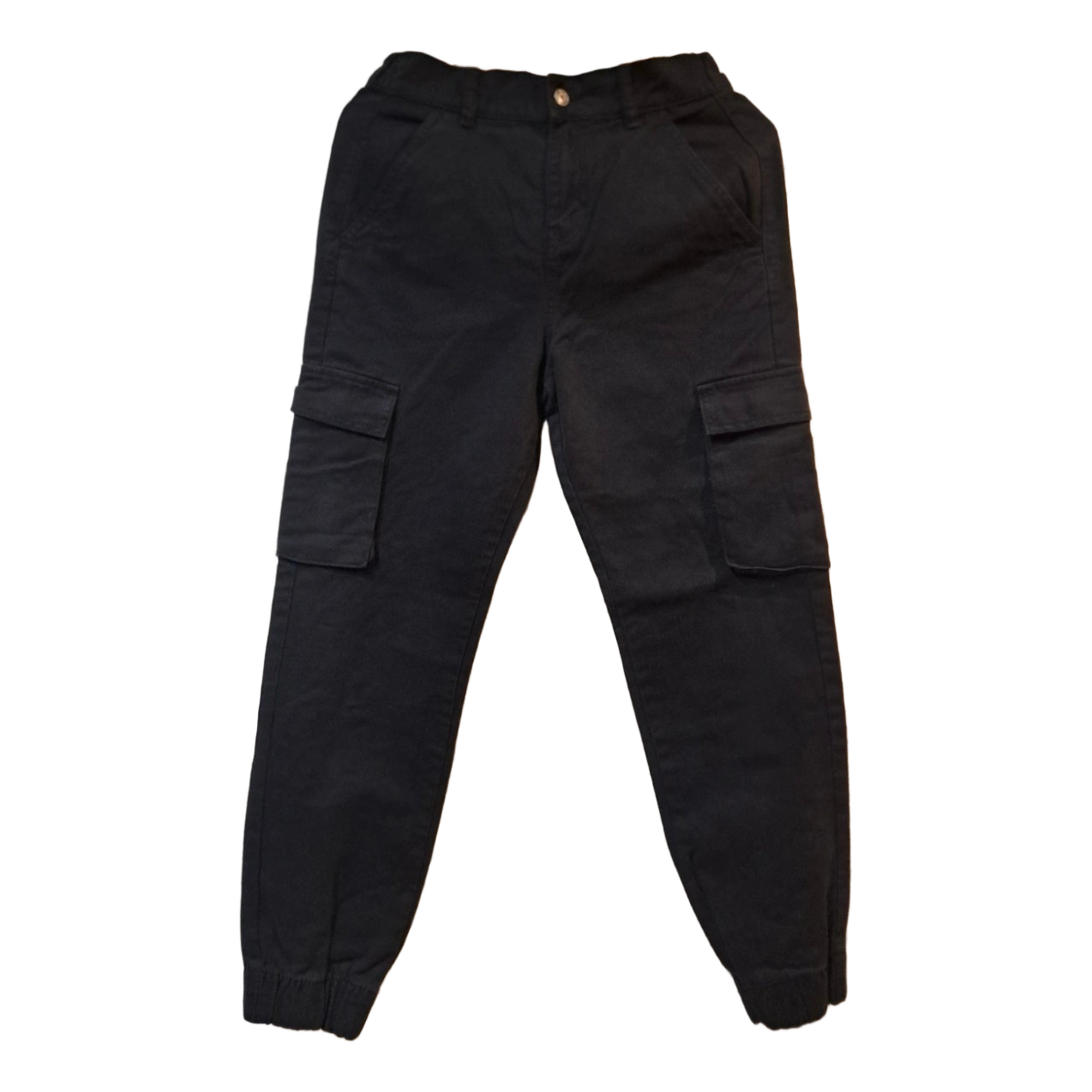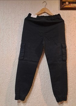 Black cargo joggers with side pockets and elasticated cuffs. New with tags. Size 38.