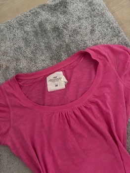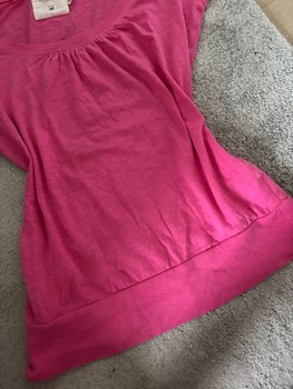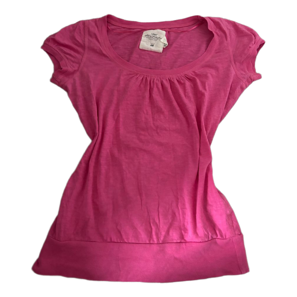 Light pink H&M shirt with a ruched neckline and wide hem.