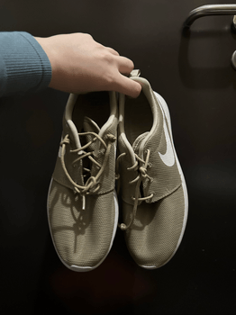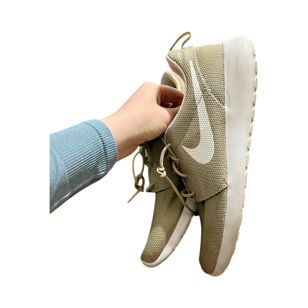 Light green sneakers with a mesh upper and white sole. Features a lace-up design and padded collar for comfort.