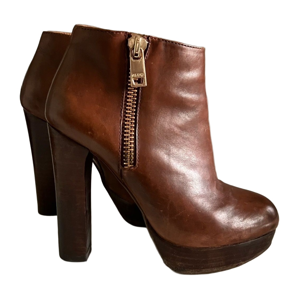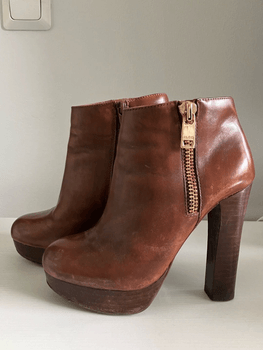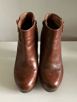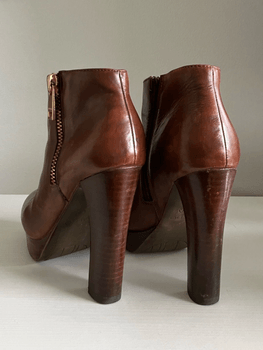 Heeled ankle boots / high-heeled shoes - Color: brown/cognac - Brand: Aldo - Size 36 - Insole length 23 cm - Heel height 12 cm, platform sole height 2 cm - Upper leather, lining textile/leather - Insole length 23 cm