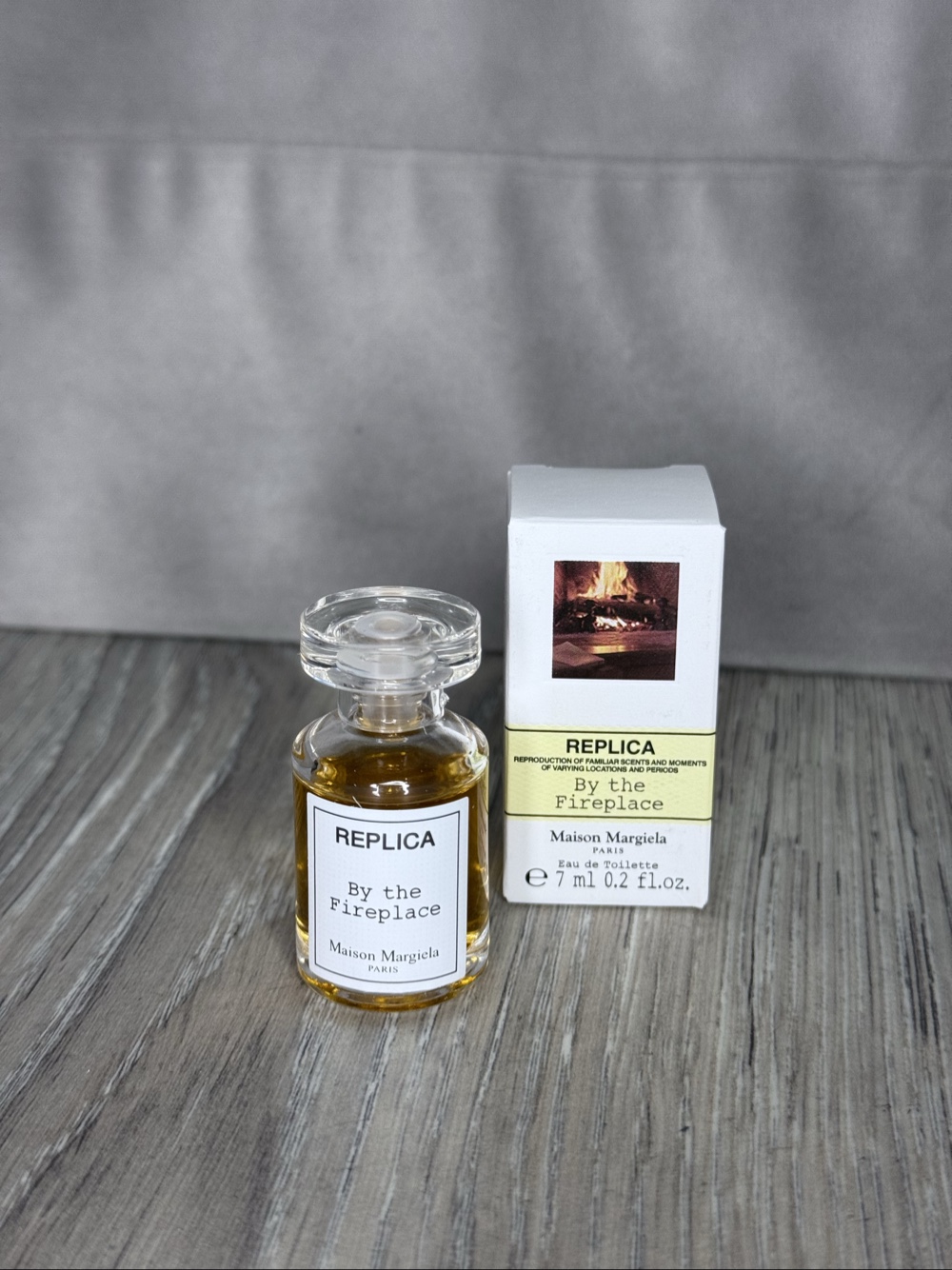 Maison Margiela Replica By the Fireplace eau de toilette. Mini bottle, 7 ml. Scent: wood, vanilla, spices, amber.