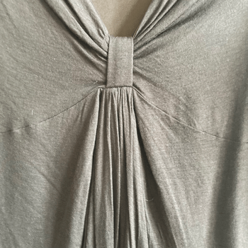 Features a flattering deep V-neckline, pleated front detail, long sleeves, and a soft inner lining.