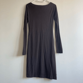 GANT Brown Wool Lyocell Midi Dress Size S V-Neck Pleated
