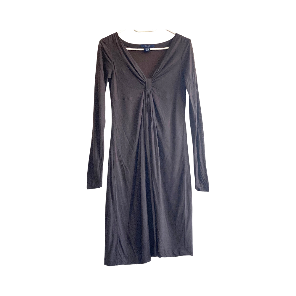 GANT dress, wool midi dress, lyocell dress, tencel dress, brown dress, V neck dress, pleated dress, long sleeve dress, office dress, dark academia, minimalist style, heritage fashion, preppy, cosy, comfortable, breathable fabric, timeless