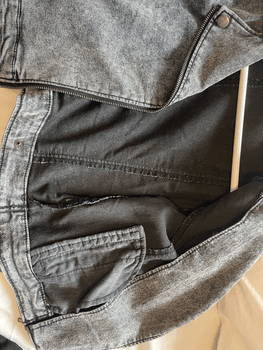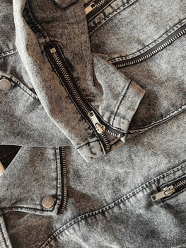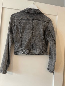 H&M's cropped denim jacket, pockets with zippers. Back with adjustment snaps and sleeves with zippers. Numeric size 36, tags cut off but I remember buying this jacket very well 😄 stretch material.