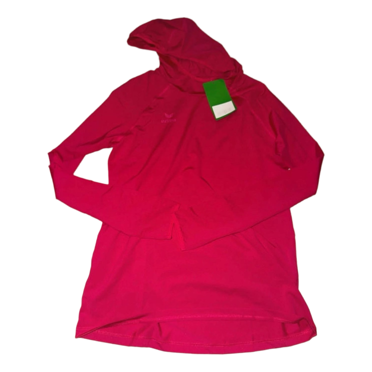 Bright pink sports hoodie with hood. Long sleeves, lightweight material.