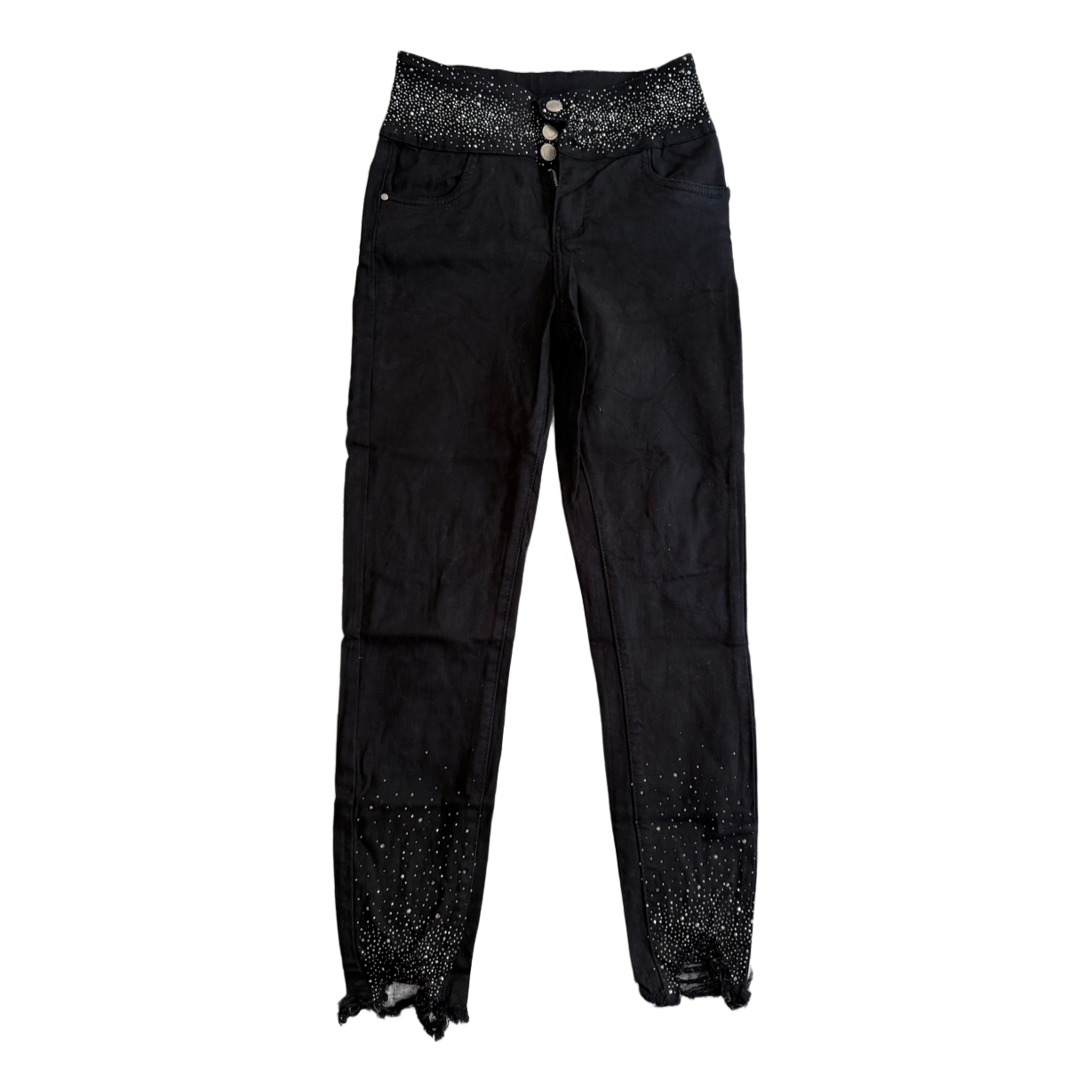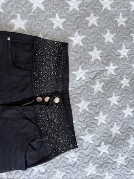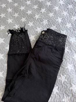 Very stretchy, with elastane, very soft shiny denim jeans. High waist, super comfortable. Like new, worn only a few times. True to size. Shines very beautifully in the sun and light.