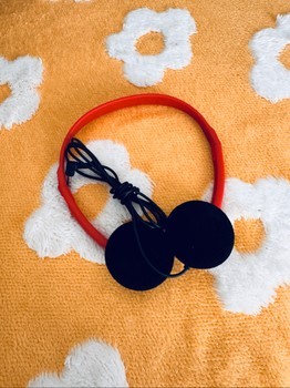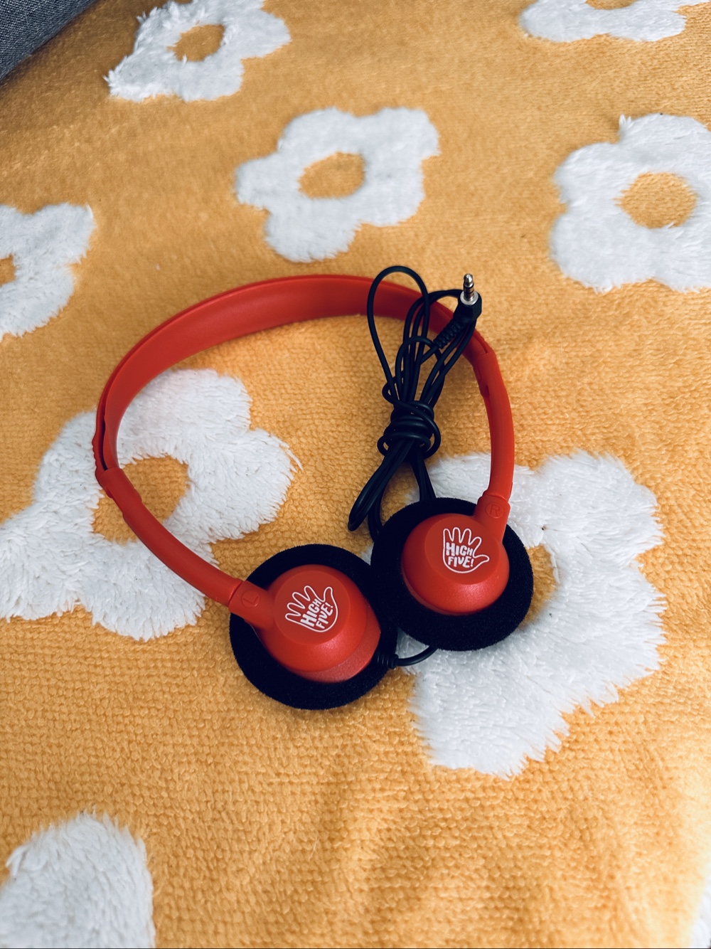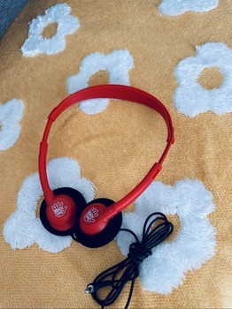 Red High Five headphones with 3.5 mm connection. Padded ear cups.