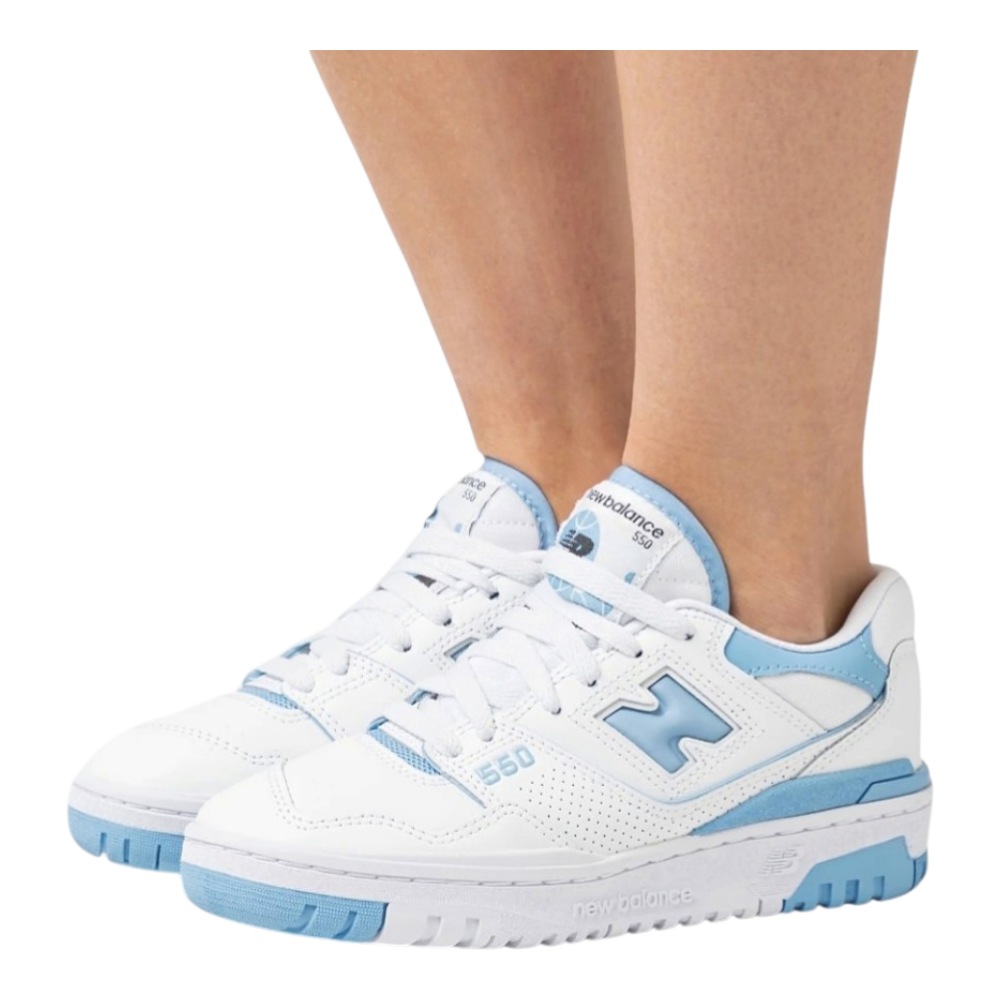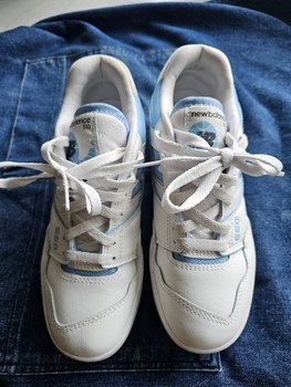 White and light blue New Balance 550 sneakers. Size 38. Trending!!