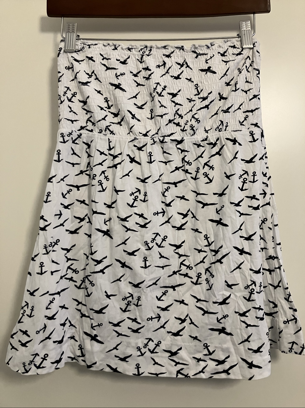- White base with blue seagull and anchor motifs