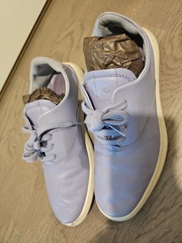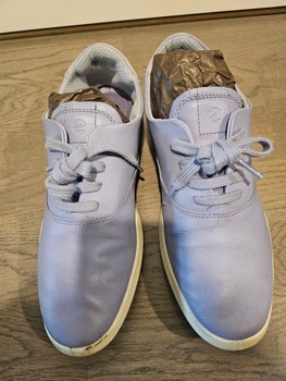 Ecco leather sneakers in lilac. Lace-up closure with white rubber soles. Size 39.