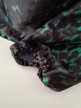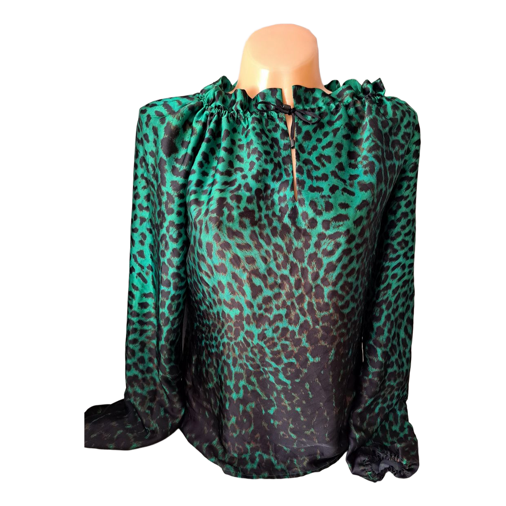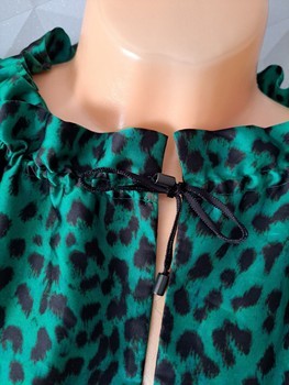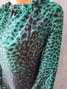 Pikkade varrukatega pluus leopardimustriga. Kaelaosas nöörpinguti ja väike lõhik.