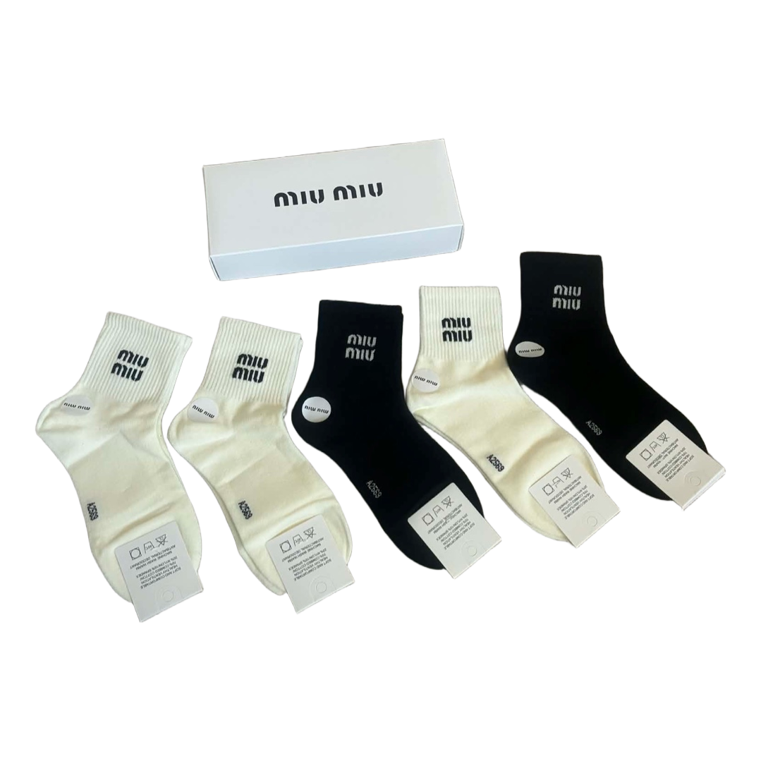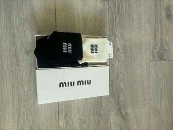 Set of black and white crew socks with Miu Miu logo. New with tags in original box. Size M/M.