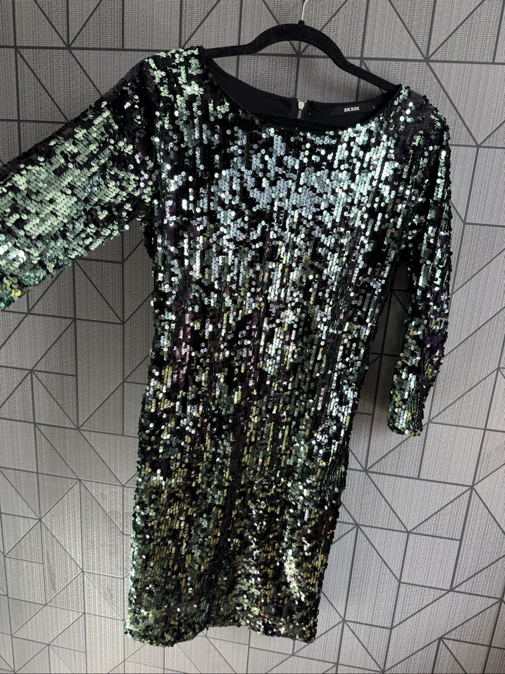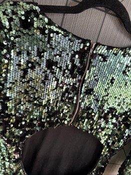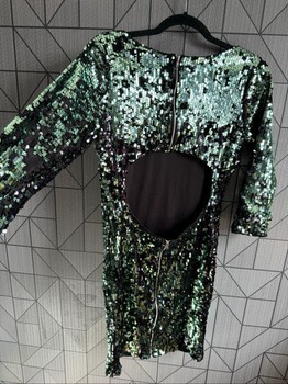 Zaļa fliteru kleita ar atvērtu muguras daļu. Izmērs L.