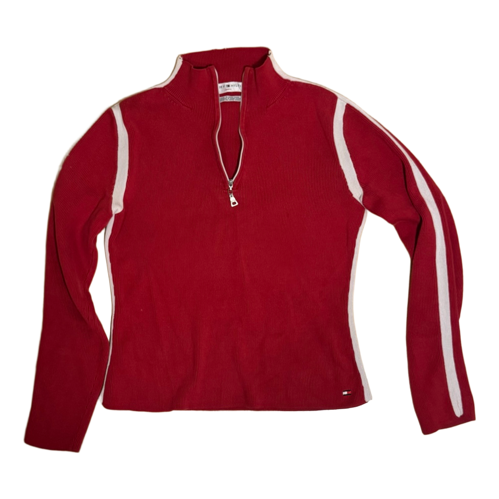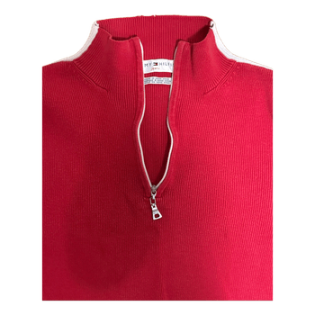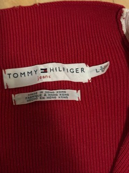 Red Tommy Hilfiger sweater. Size children's L which is good for a woman size S! Good condition, except small fraying at the neck.
