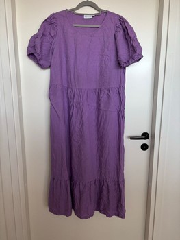 Nakoa Astrid Dress linen dress in shade Iris. Size L. Armpit-to-armpit approx. 57 cm. Shoulder-to-hem approx. 123 cm. Elastic bands at sleeve hems. Very good condition. Used once. No faults. After washing only needs ironing. Ironing is buyer's responsibility. In hanger photos the closest true shade. RRP 149.90€.