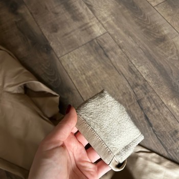 Faux leather trousers in beige color. Features a soft fleece lining inside. Size 38/M.