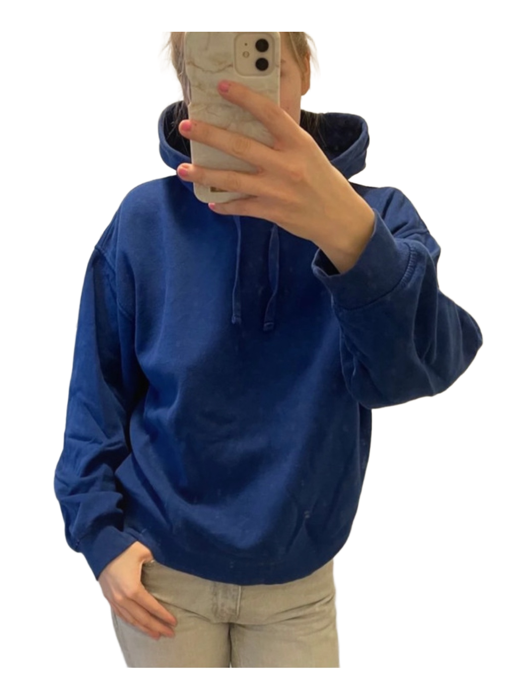 Blue hoodie with drawstrings