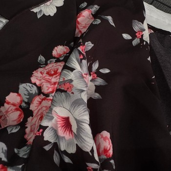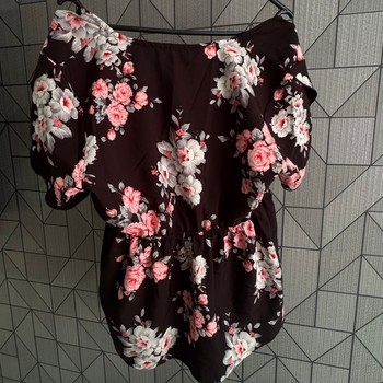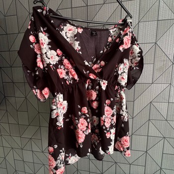 Floral print blouse with a v-neckline and elastic waist. Size 0XL.