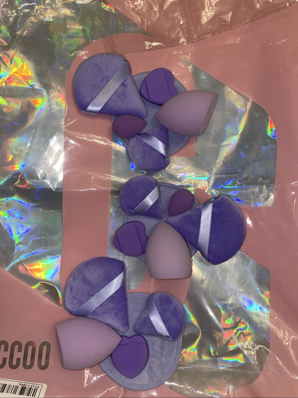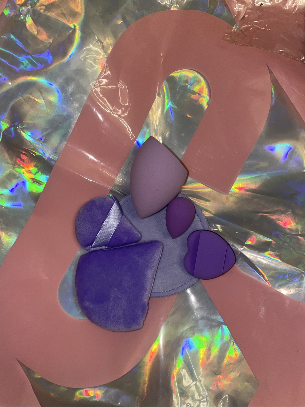 Set of purple makeup sponges and applicators. Unit price 3€