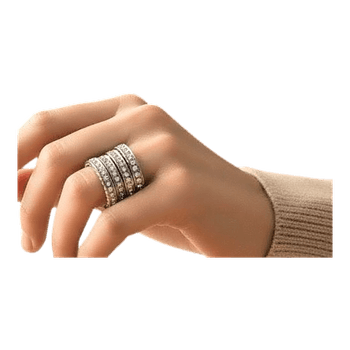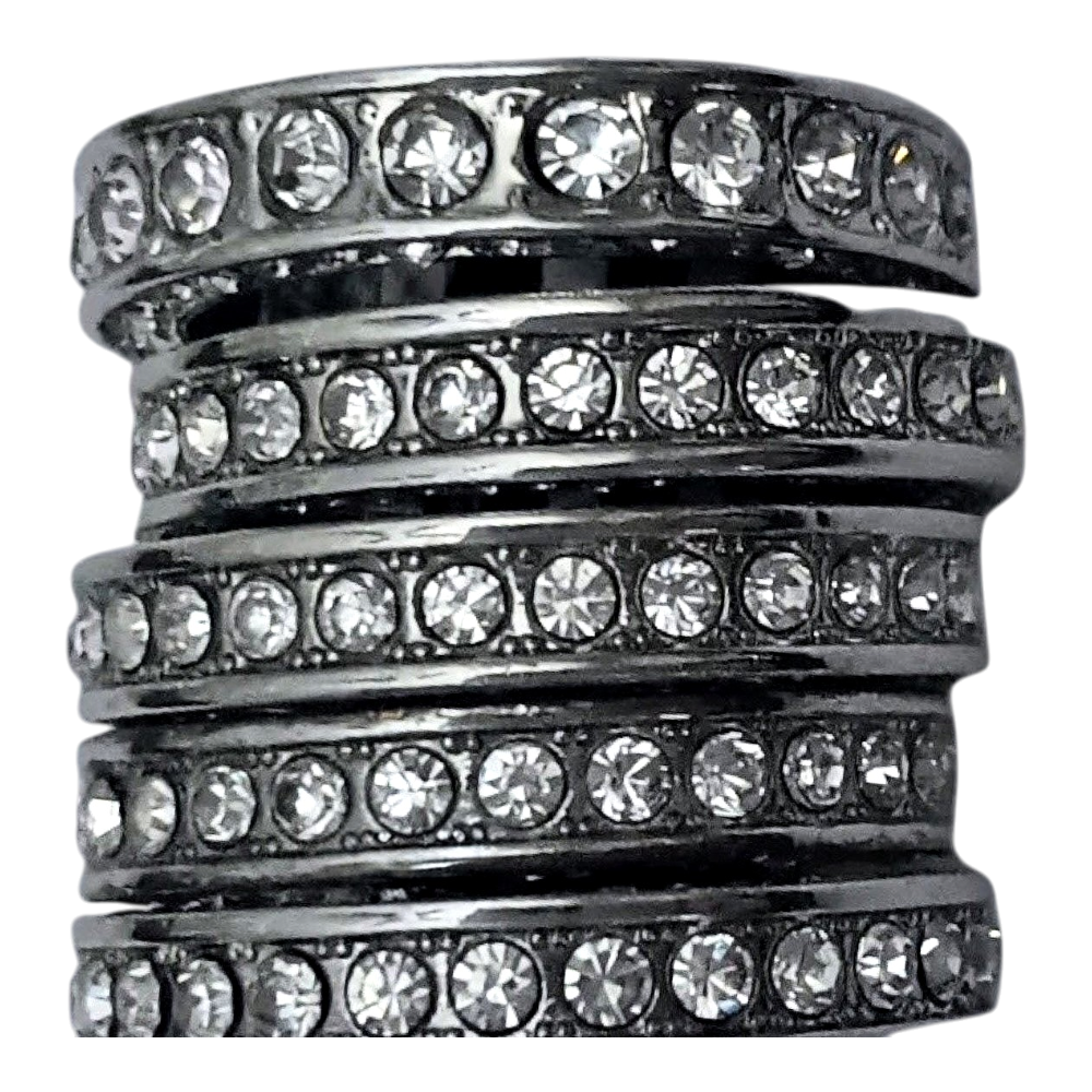 Silver-colored rings 5 pcs. Size 17.9 mm. Classic and showy ring together or separately. Unused. Clear stones around and on the side of the ring. Jewelry metal alloy.