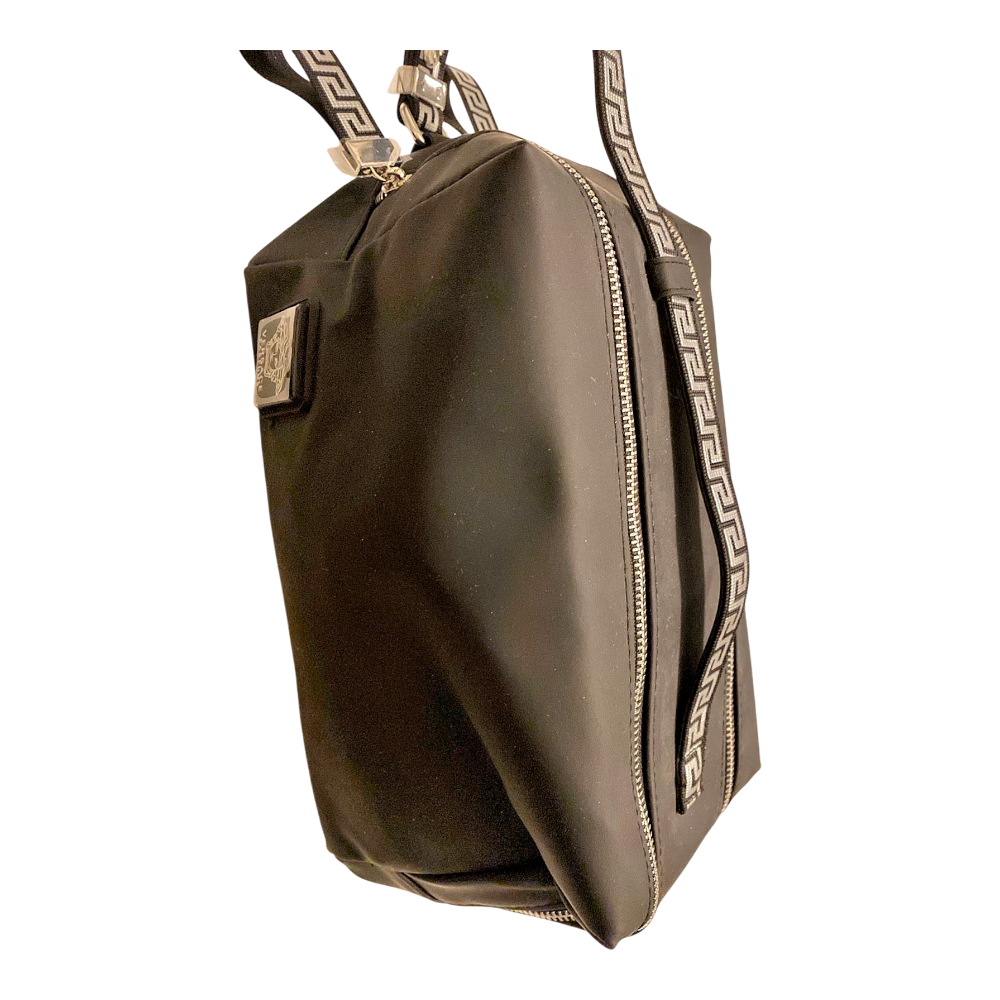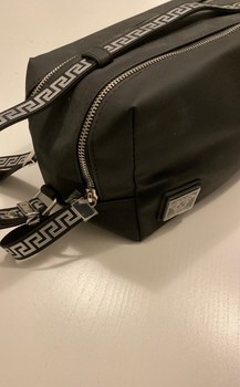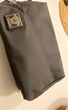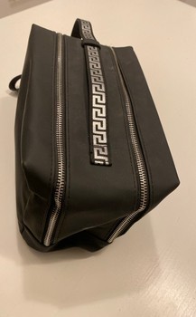 Completely unused luxurious bag with two zippered compartments and an inside zippered pocket. Size 25 x 13 x 14 cm.