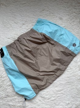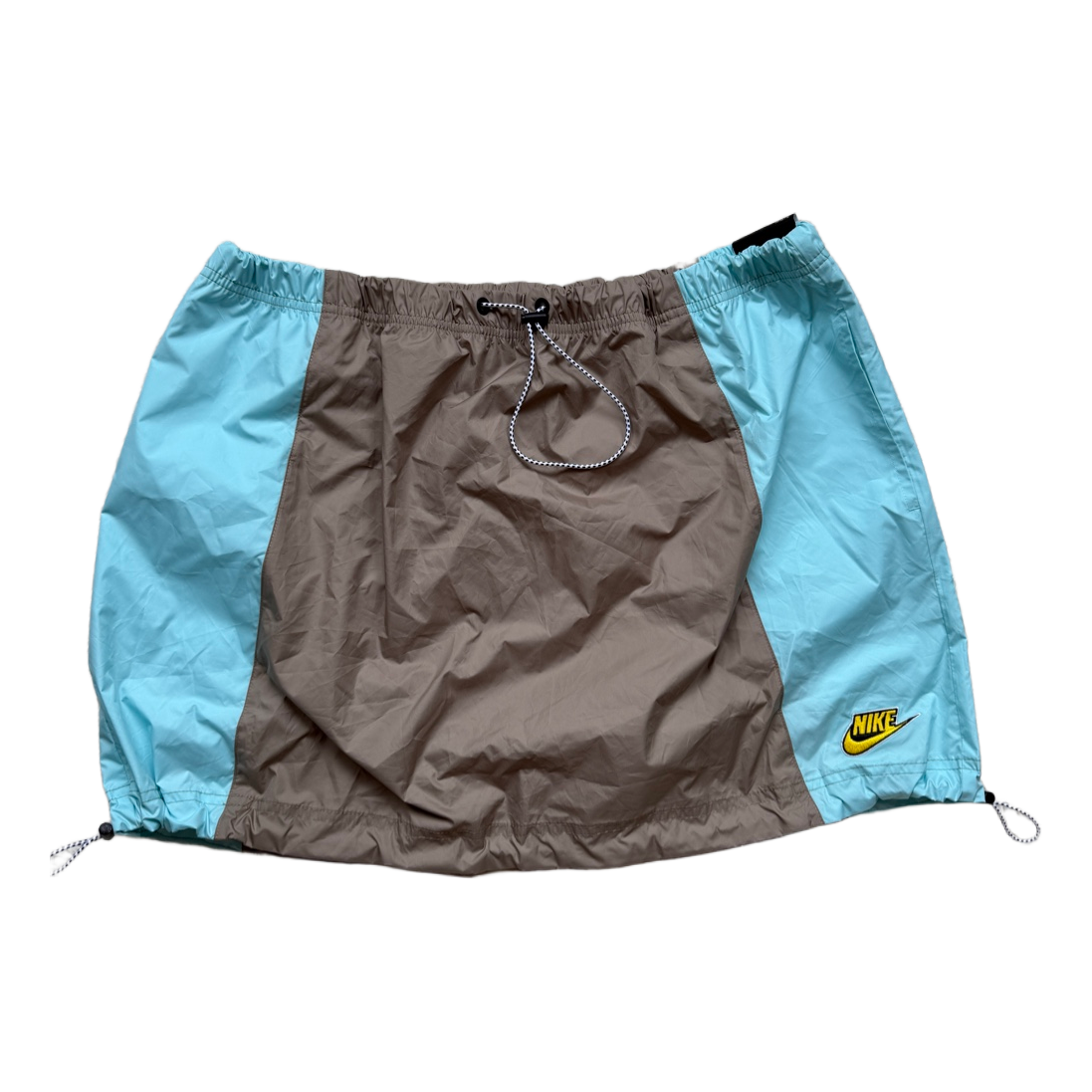 Nike colorblock skirt in light blue and brown. Features adjustable drawstring waist and hem. Size XL, new with tags.