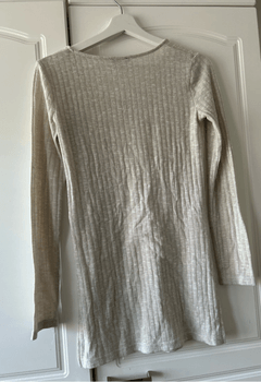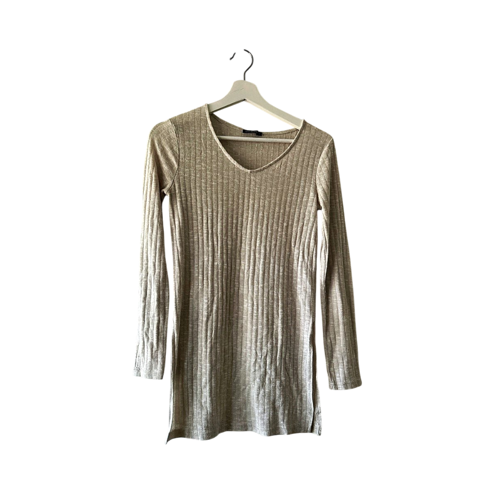 Beige ribbed-texture long-sleeved shirt, slits on both sides