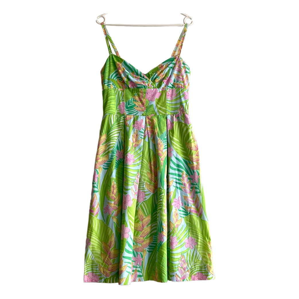 Lilly Pulitzer Floral Babydoll Dress XS S US 4 Green Summer Mini Dress Retro Women’s