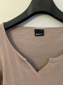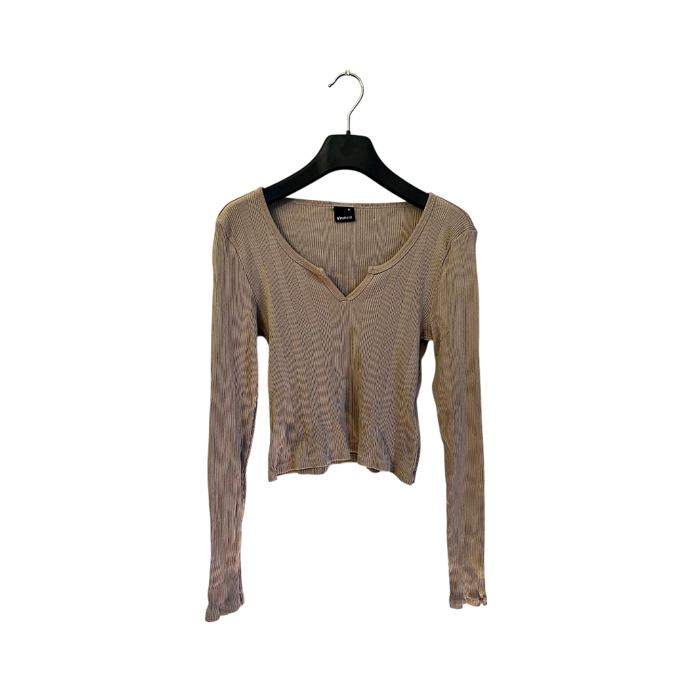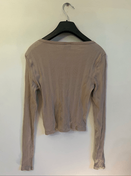 Good condition beige long-sleeved shirt, V-neck.