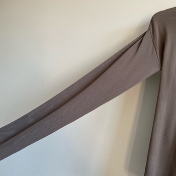 Soft, stretchy knit fabric (feels like a viscose blend) that drapes beautifully on the body and is comfortable to wear all day.