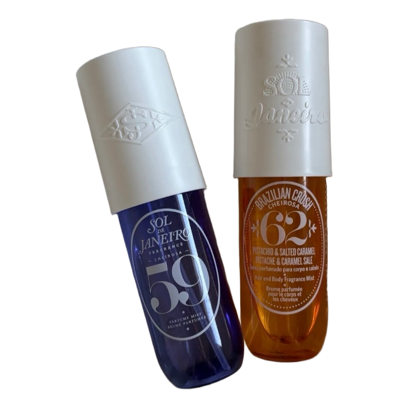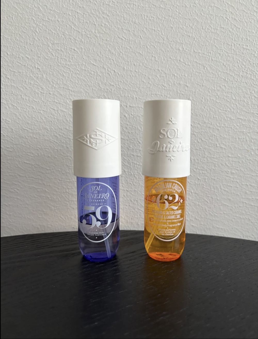 Two Sol de Janeiro perfume mists 59 & 62. In the other picture it shows how much has been used.