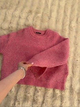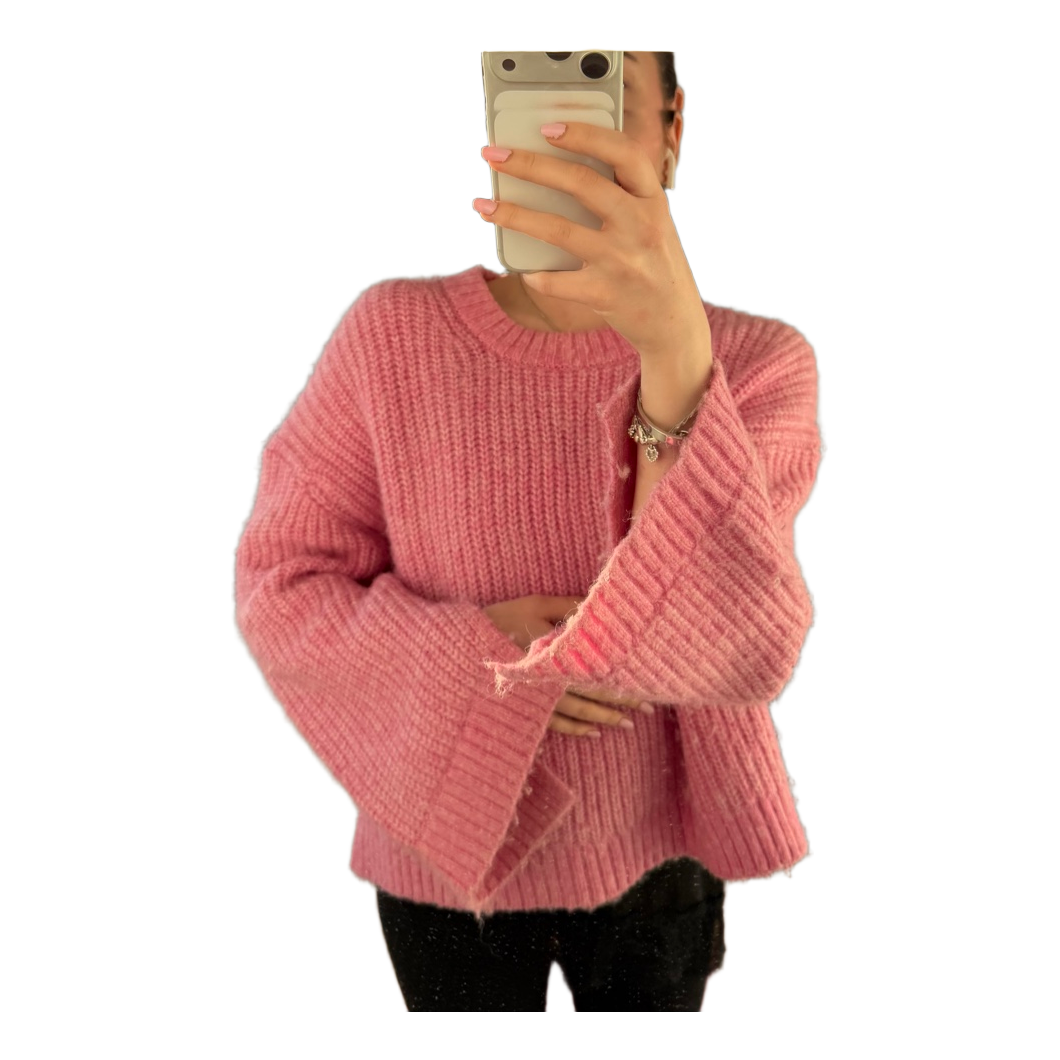 Chunky ribbed knit sweater in pink with wide sleeves. Size L (im size S)