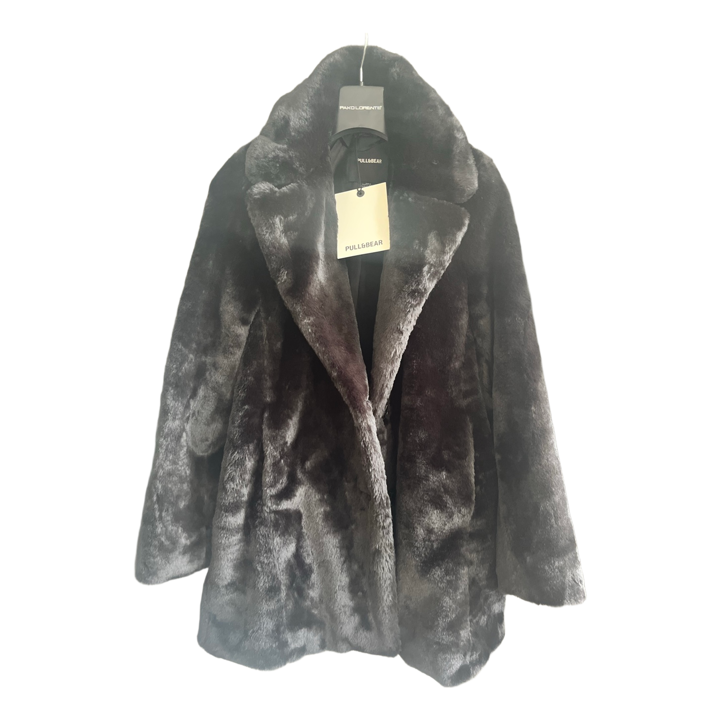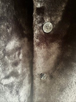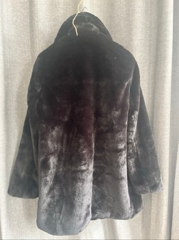 Black faux fur coat with a button-up front. Features a large collar. Size M.