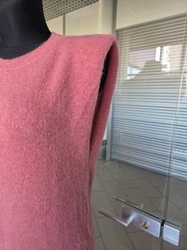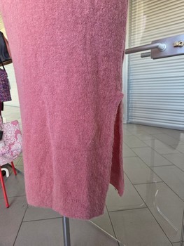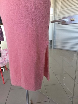 Sleeveless knitted midi dress in pink with padded shoulders and side slits. Made in Italy.