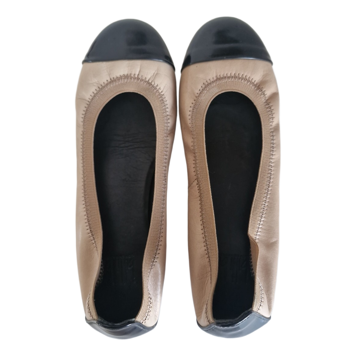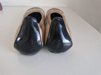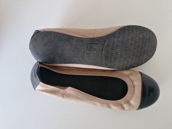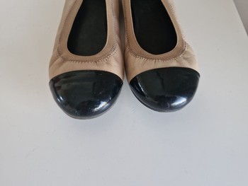 Beige-colored leather ballerinas, with a black toe and heel counter. Size 36. Slight signs of wear on the black parts.