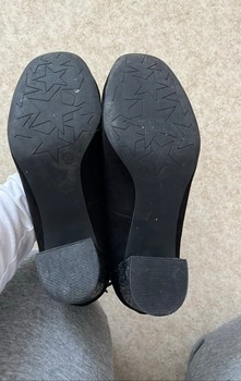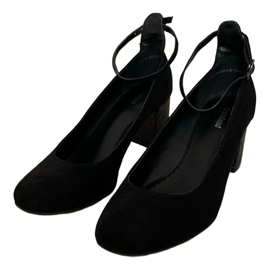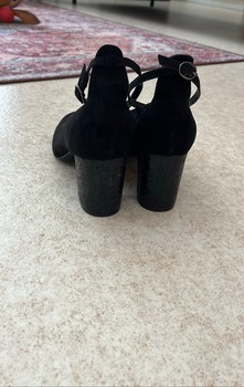 Black high heels with ankle strap and glittering heels