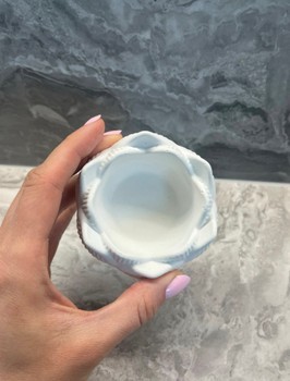 White lotus flower shaped tea light candle holder. Made of concrete material. Handmade.