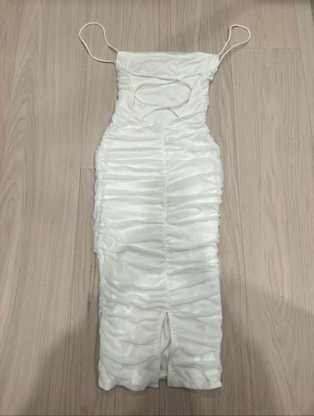 White Oh Polly skin-tight midi dress. Lacing at the back and straps can be worn normally or crossed from the neck. Completely unworn, size UK 6