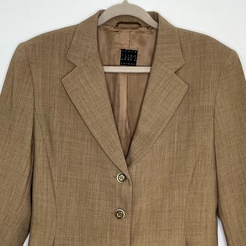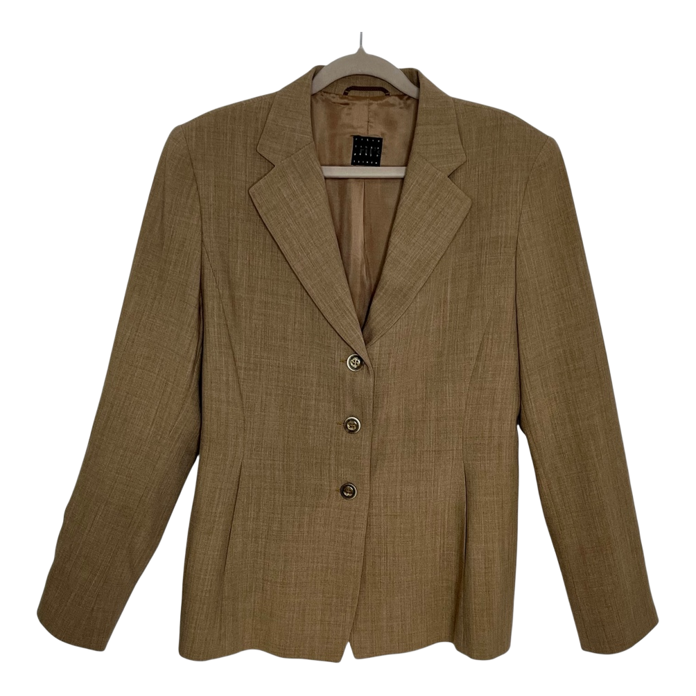 Beige women's blazer. Size 38. Made from a blend of polyester, wool and elastane.