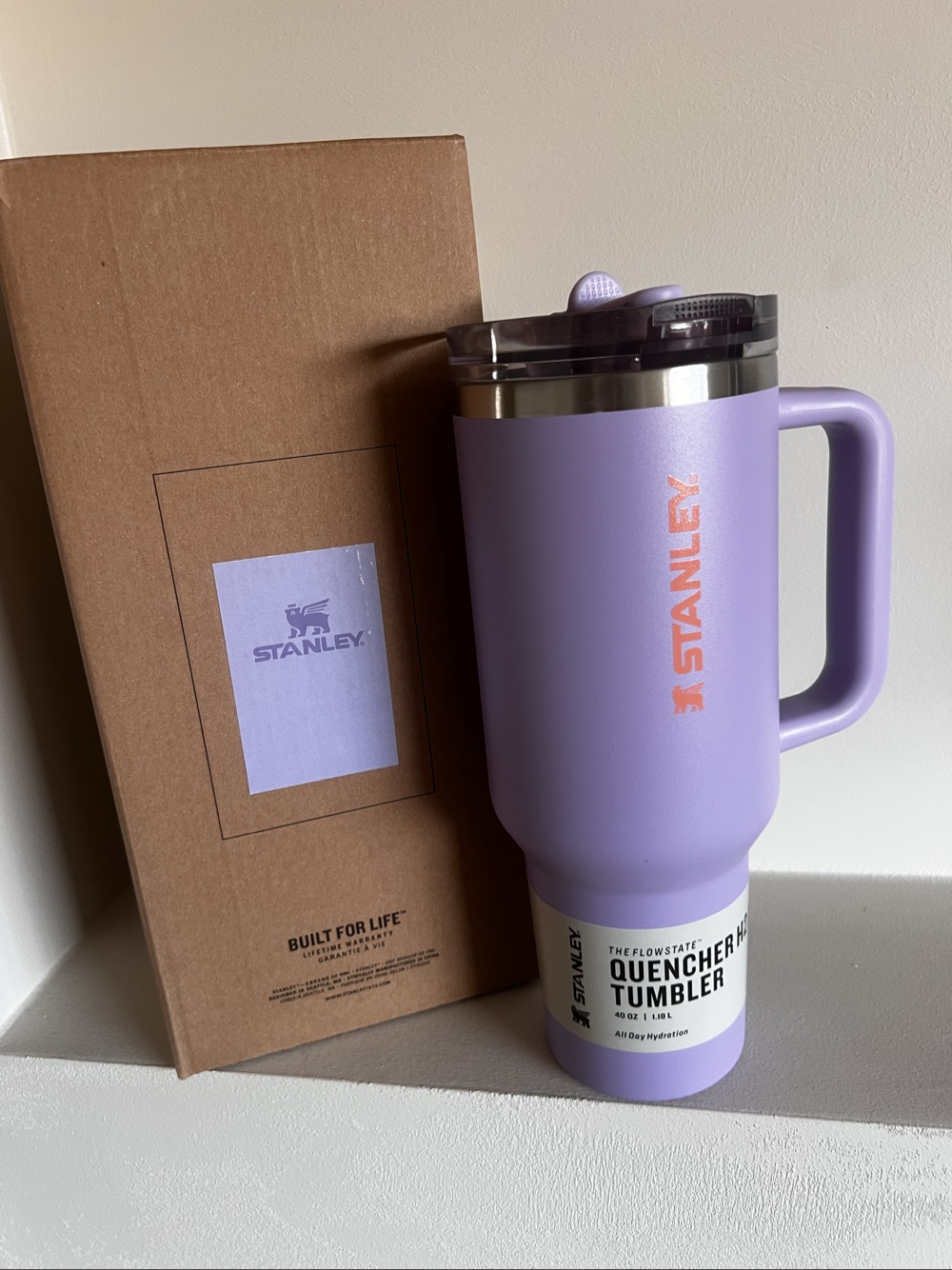 Stanley The Quencher H2.0 flowstate tumbler in purple. Capacity 1.18 L (40 oz).